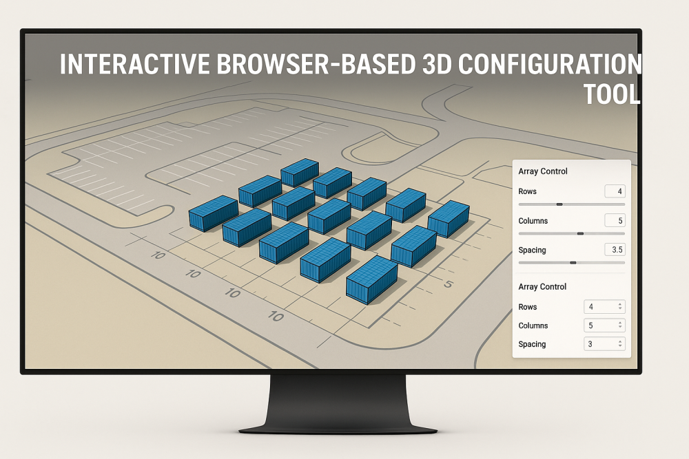 Imagine a fully browser-based 3D configuration platform that lets you visually lay out modular components on top of a site plan, make live adjustments, and instantly validate spacing and alignment—all without relying on heavyweight CAD tools or expensive proprietary platforms. This type of solution can be developed using standard web technologies like HTML5, JavaScript, and Babylon.js, and tailored specifically to your industry needs.